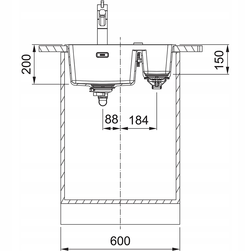 - Głębokość dużej komory 200 mm