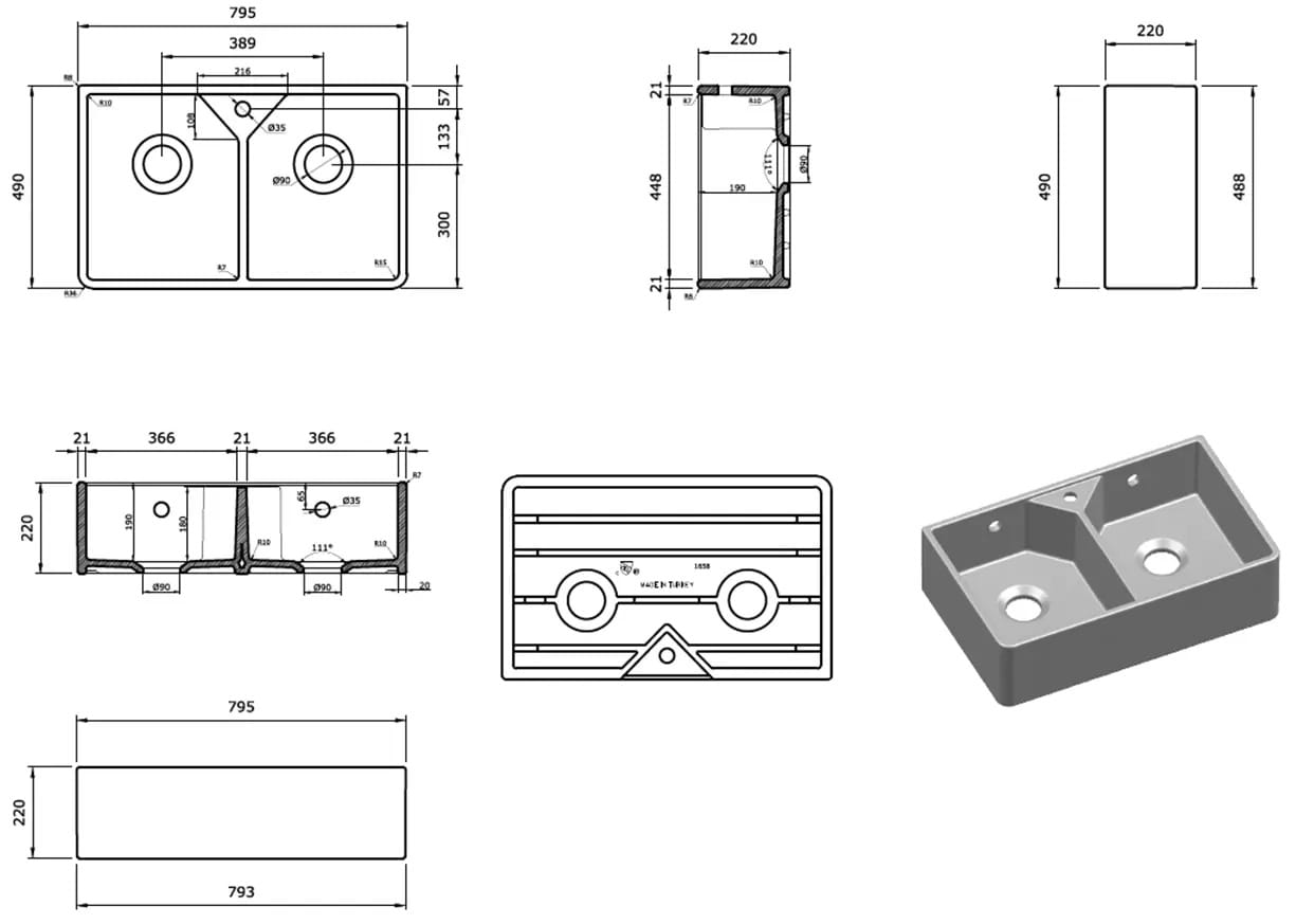 - Zlewozmywak nadaje się do zamontowania pod blatem lub do montażu wolnostojącego pomiędzy dwie szafki.